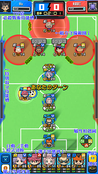 ※被設定為【キャプテン(隊長)】的選手,GP/TP會少量增加,羈絆範圍也比較廣。