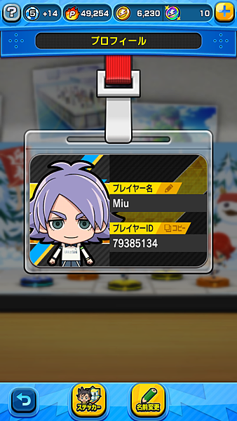 .プロフィール(Profile):查看球員証(ID)、變更暱稱、頭像